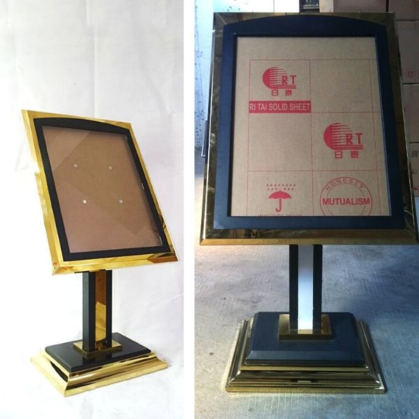 - Bảng welcome có thân đỡ bằng thép phun sơn tĩnh điện đen kết hợp với inox mạ vàng cao cấp và sang trọng. Các chất liệu đều có độ bền cao, khả năng chịu lực tốt. Đặc biệt là không han gỉ hay oxy hóa trong quá trình sử dụng.