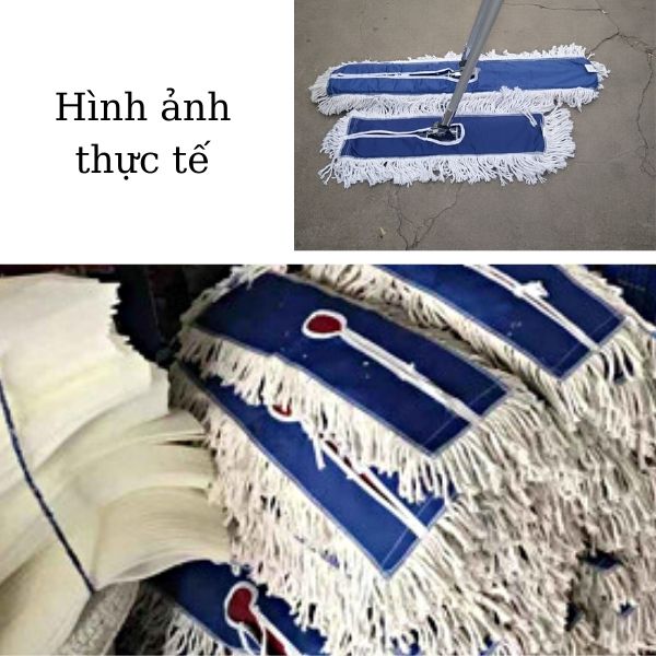 - Bông lau sản xuất từ sợi vải cotton cao cấp, mềm mịn, mật độ sợi vải dày. Chính vì vậy, cây lau sàn khô dễ dàng hút ẩm và làm khô bề mặt sàn một cách nhanh chóng. Đảm bảo không để lại sợi bụi vải trên bề mặt của sàn.