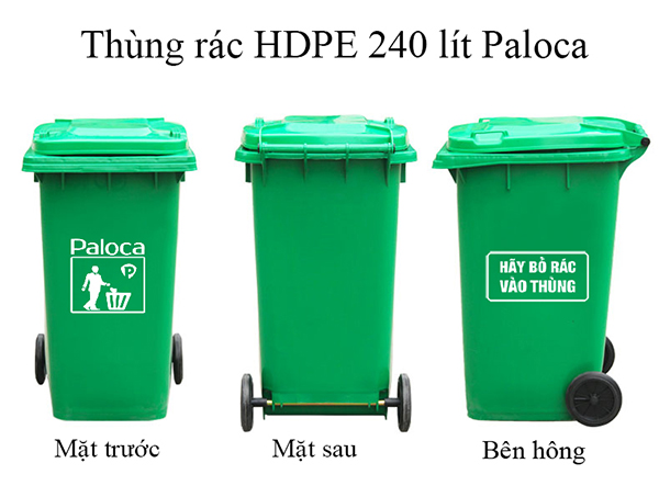 Sản phẩm thùng rác công nghiệp 240 lít được sử dụng phổ biến trên đường phố, trong trường học, bệnh viện, các địa điểm công cộng,... Thùng rác 240l công nghiệp Paloca có nhiều ưu điểm như dẻo dai, bền bỉ, kích thước lớn, có khả năng chứa được nhiều loại rác thải khác nhau… Sản phẩm hiện đang được phân phối độc quyền trên toàn quốc bởi Công ty Hành Tinh Xanh.